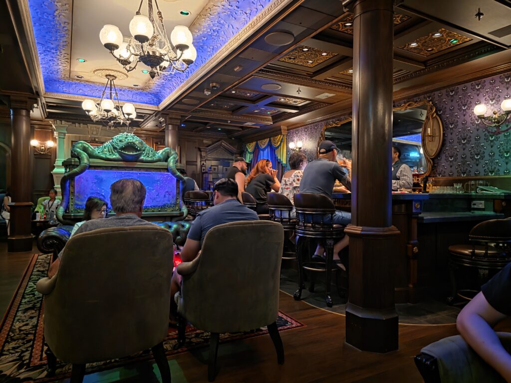 | Disney Treasure – Periscope Pub | Steampunk “20,000 Leagues” energy with a glass ceiling looking “up” into the ocean. | This is a storyteller’s dream: you’re “inside” the Nautilus, surrounded by rich details and an underwater view that feels cinematic, not chaotic. The seating and lighting feel more like an intimate, upscale lounge than a noisy bar, so you can savor a cocktail, talk, and still feel rested for tomorrow’s adventures. |