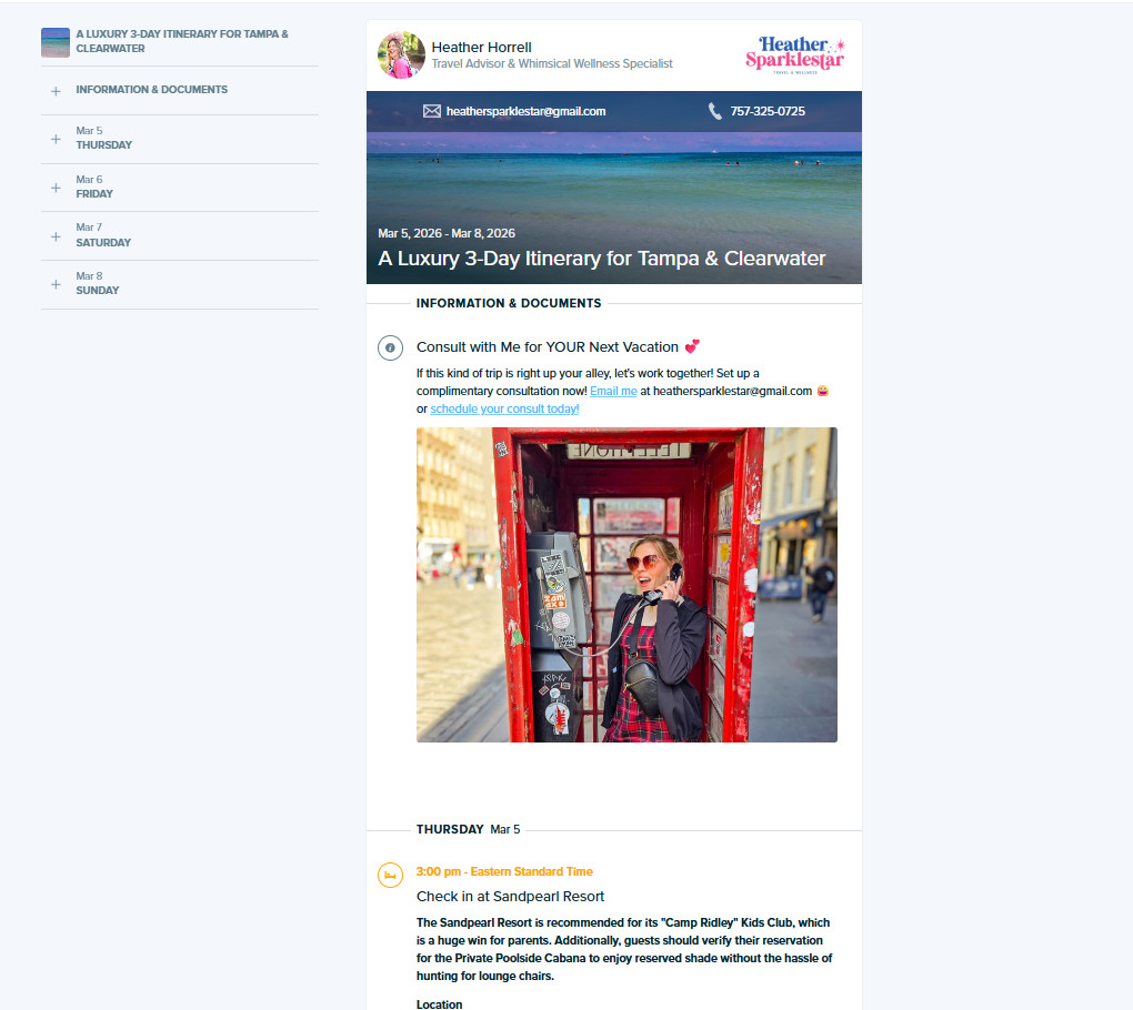 View this Itinerary in the Actual App I Give My Clients! Select the Photo or Click Here to View.